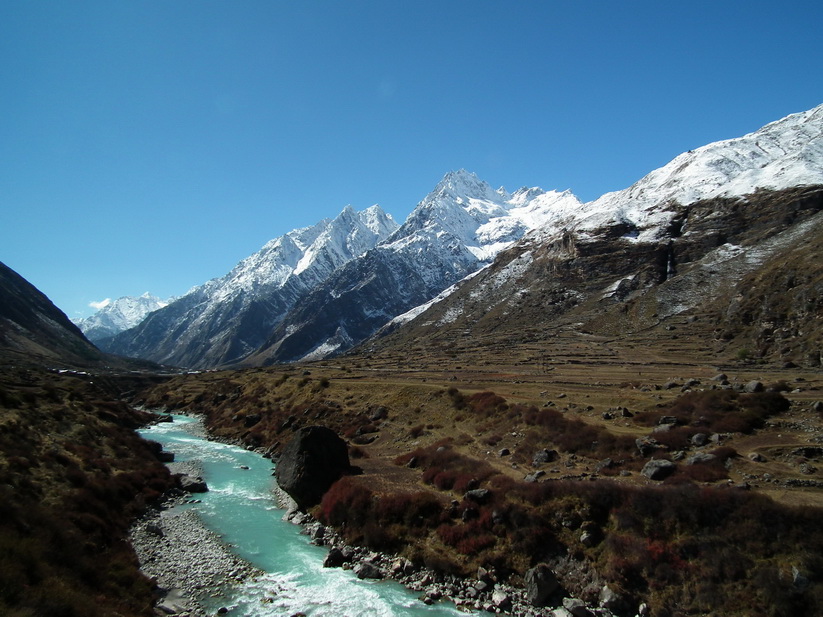 Trzeba przyznać, że widoki na pobliskie bezimienne pięcio- i sześciotysięczniki z nawiązką rekompensują trudy marszu. O tej porze roku w dzień pogoda jest wręcz idealna do chodzenia po górach. Temperatura sięga ok. 20 st. C, a słońce szybko spala nosy i usta. Gorzej sprawa ma się w nocy, bo temperatura w hotelowych nieogrzewanych pokojach bez ciepłej wody spada do zera i dwie noce, które spędziliśmy w Badrinath mimo naszych śpiworków dały nam się nieco we znaki.