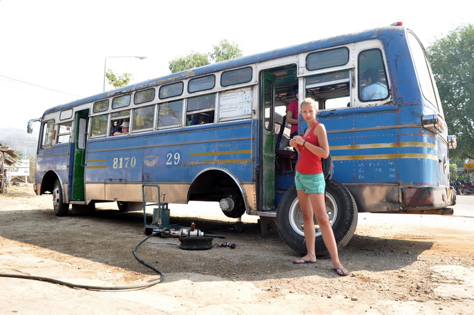 Mimo że nie bez trudu udało nam się wymienić lusterko na własną rękę i przykamuflować nieco obrażenia motocykla, wprawieni naciągacze z wypożyczali bez problemu zauważyli otarcia i zażądali 10 000 bahtów (1 000 zł). Za żadne skarby nie dali się oczywiście przekonać, że 200 zł to i tak wygórowana kwota, ale wspaniałomyślnie jesteśmy w stanie zapłacić nawet 300 zł. Cenę udało nam się zbić zaledwie do 450 zł.