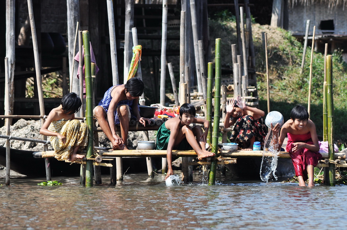 W niezliczonych kanałach jeziora cały czas tętni życie niezmienione od wieków. Ktoś kąpie się na pomoście, a kto inny robi pranie. Rybacy zarzucają sieci, większe łodzie towarowe niezmordowanie przewożą większe ładunki. Tuż obok ktoś ręcznie godzinami pompuje wodę na ryżowiska. W jednej z wiosek wzbudziliśmy szczere zaciekawienie młodych mnichów, stając na postój w nieodwiedzanym przez nikogo klasztorze. W innej podpatrywaliśmy wycieńczającą walkę z żywiołem, gdy buduje się nowe pola uprawne.