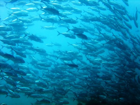 Ale za to w poszukiwaniu łupu przypływają tu liczące setki osobników ławice ogromnych barakud, a czasem niczym ściana wyrasta przed nami tuńczykopodobnych karanksów.