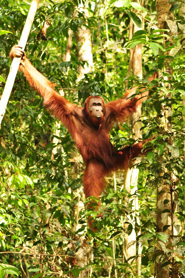 Gdy obserwuje się orangutany w naturalnym środowisku, nie sposób nie odnieść wrażenia, że właśnie obserwujemy praczłowieka. Zwierzęta te chodzą, jedzą, wspinają się i zachowują jak ludzie. Podobnie jak inne naczelne, bardzo szybko się uczą, a w towarzystwie ludzi podpatrują nasze zachowania. W Parku Tanjung Puting w południowym Kalimantanie na przykład lubią udawać, że piorą, młotkiem wbijają gwoździe czy pływają łodzią. Wieczorem palcem myją zęby, a w ciągu dnia podpatrują strażników i udają, że kijem piłują drzewo.