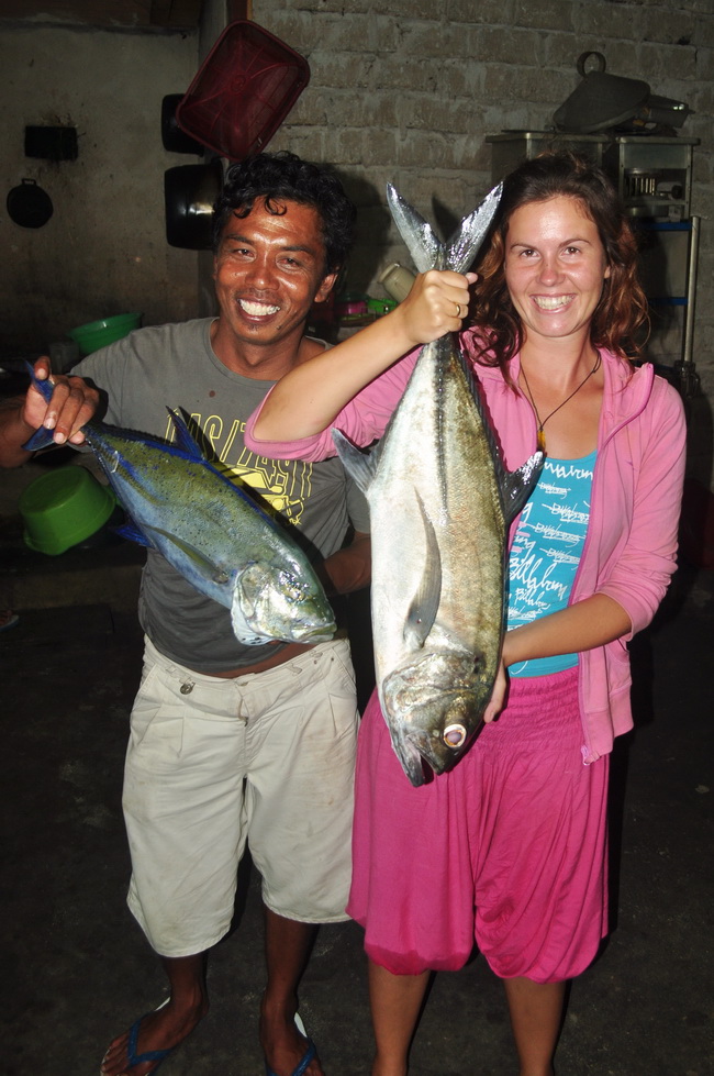Wieczorem wyprawa po kolację. Połów z łodzi – tym razem w nadziei na dużego zwierza. Czasem trafi się ponad metrowa barakuda, innym razem 5-kilowy karanks, ale czasem tylko blocie. Czas wędkarzom umilają baraszkujące w pobliżu delfiny.