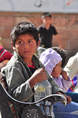Jest i baba Aymara, która po hiszpańsku mówi gorzej niż ja. W tradycyjnej chuście przerzuconej przez plecy trzyma chyba ziemniaki. Albo niemowlaka, ciężko stwierdzić, póki dzieciak nie zacznie płakać albo baba nie chuknie workiem o ścianę. Ta z kolei na ulicy sprzedaje banany. Lub chirimoyę.